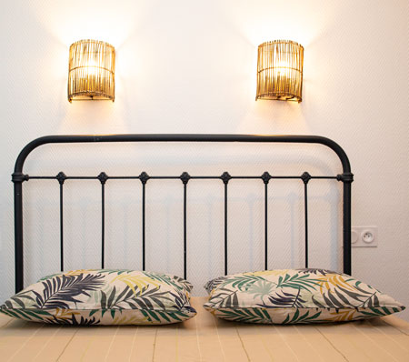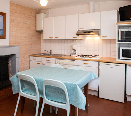 pain, autocuiseur, bouilloire, réfrigérateur ...). 1 chambre (1 lit 140x190, 2 lits 80 x 190 superposés), 1 salle d'eau avec WC, salon de jardin |