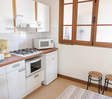 1 cuisine équipée (plaque, hotte, micro-ondes,